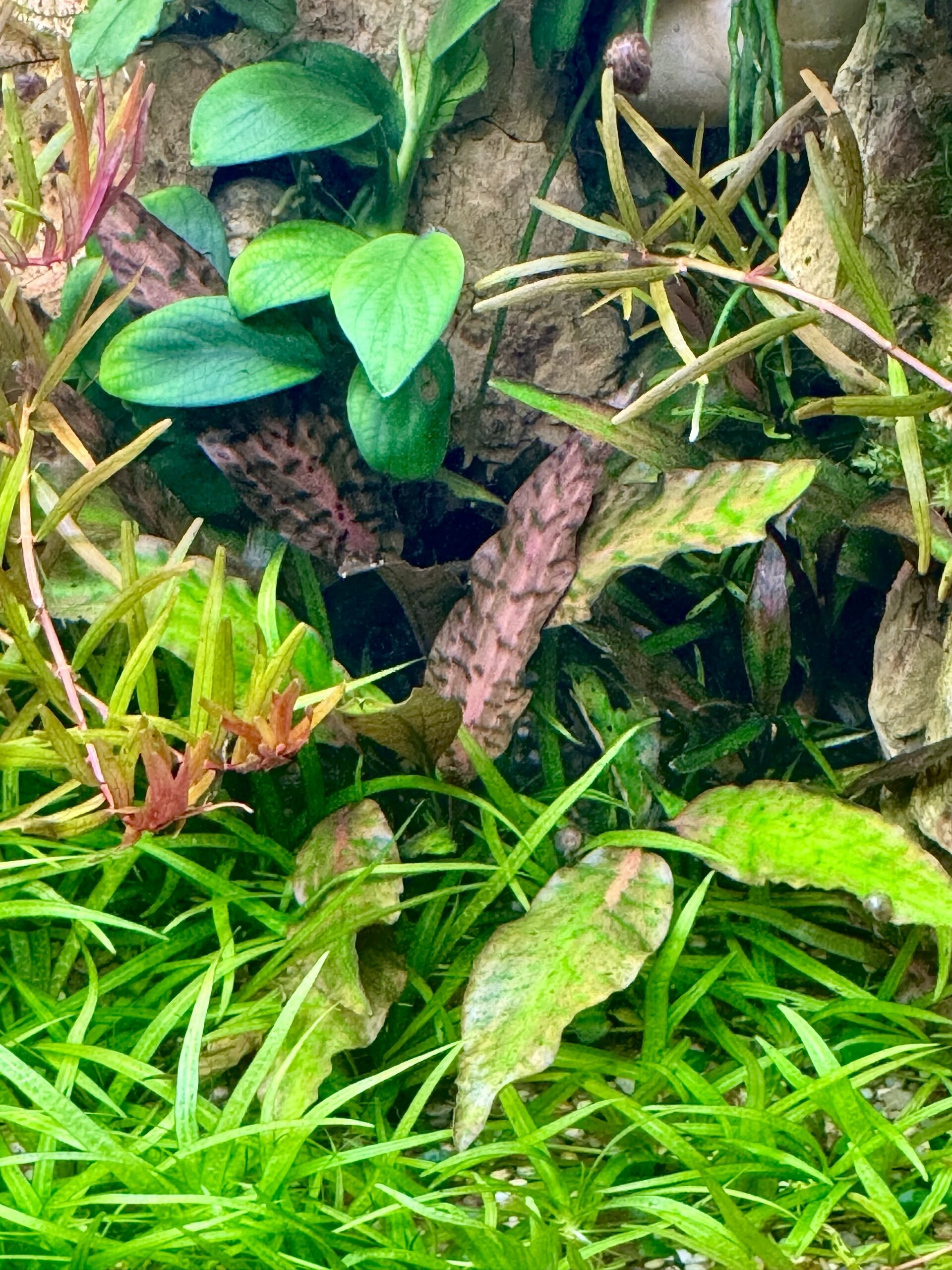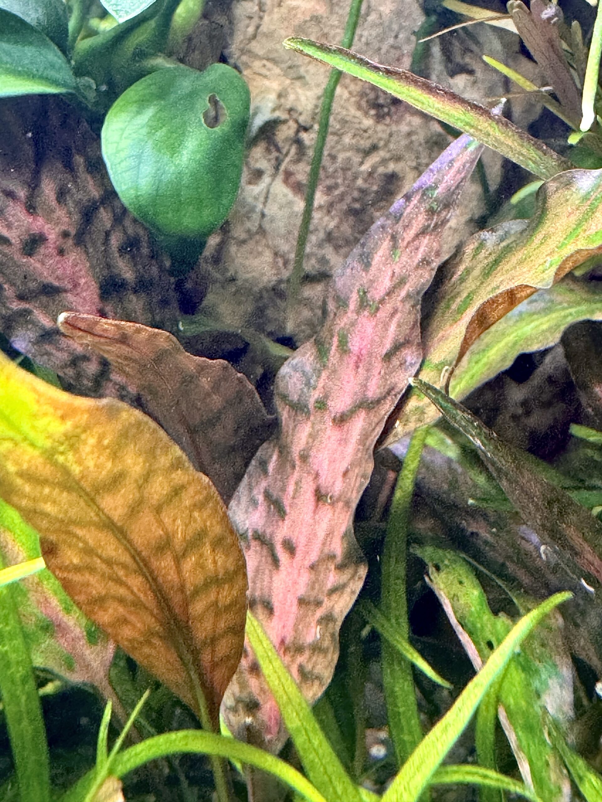I am not sure, but when I look at the picture, it resembles me my C. x purpurea from Dennerle. It was labeled as C. minima ‘Perak’, but the leaf pattern confuses me. Lets wait for a spathe.
