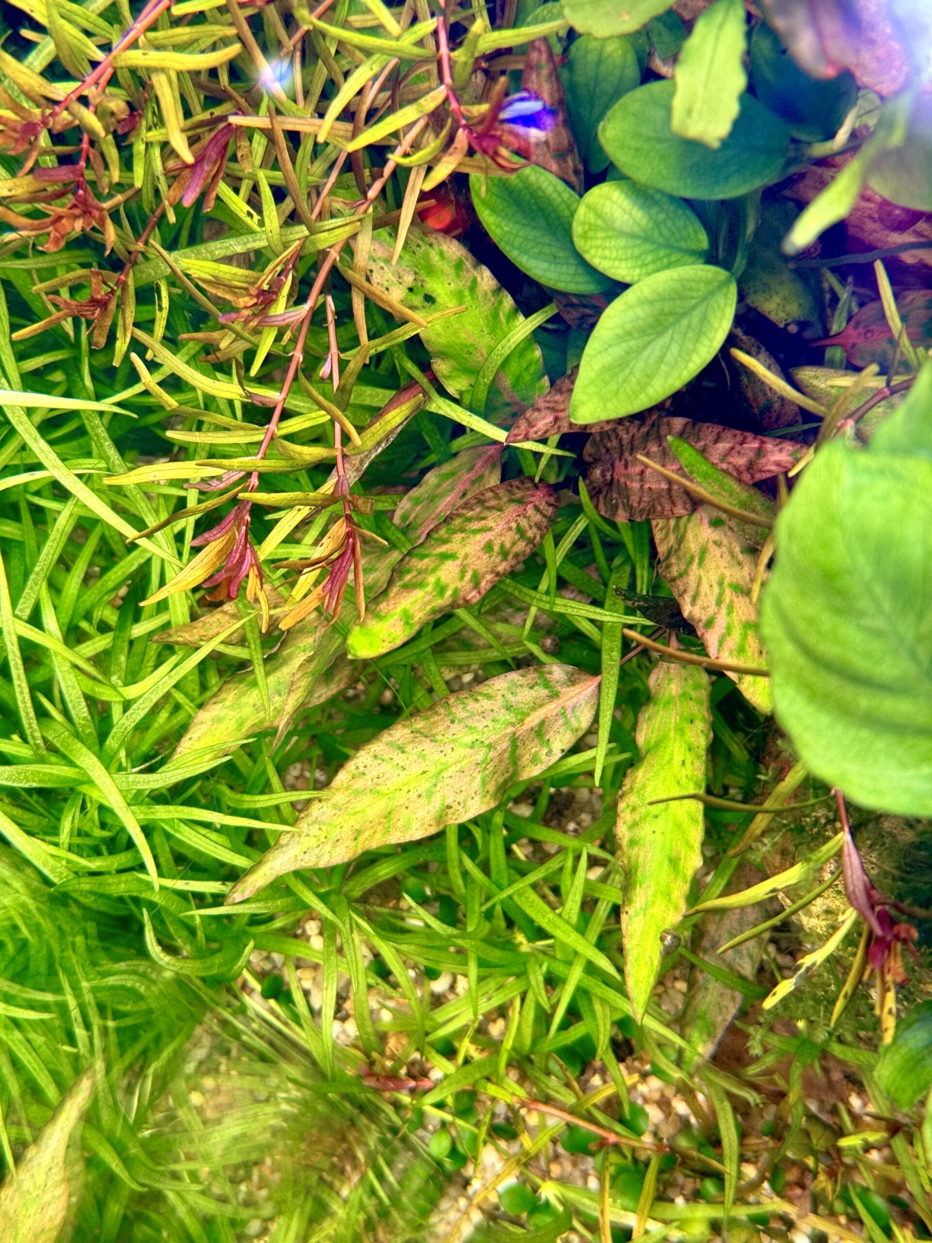I also have several of these usteriana(s) in my fish tank. The leaves were getting larger, were becoming bullated and I could see the reddish color on their underside. Unfortunately it all melted down several days ago… so the pictures of submersed plants…maybe next time.